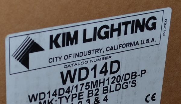WD14D KIM LIGHTING 175W METAL HALIDE FIXTURES FOR USE ON RETAIL COMPLEX EXTERIOR WALLS FOR LIGHTING OUTDOOR AREAS OF THE STORE FOR SECURITY AND SAFTEY PURPOSES, LIST IS $632.00 EACH