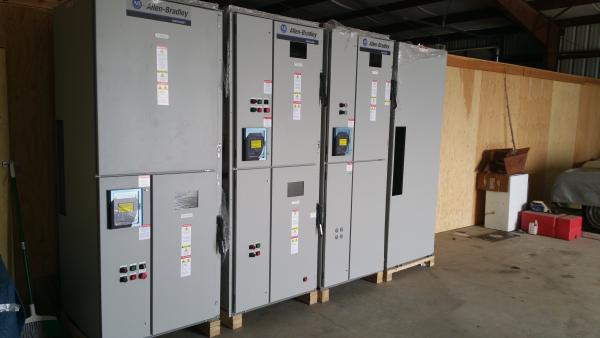 Allen-Bradley PowerFlex 7000 Power Supply Components: Air-Cooled Drive Unit & Components contained in 10 cabinets on pallets weighing approximately 35,000 lbs. total weight New components that have never been used and are in excellent condition. Description Details: Capabilities Across a Broad Range of Applications The PowerFlex 7000 drive is a flexible, easy-to-use solution designed to meet diverse application requirements across a wide spectrum of heavy industrial settings. Controls speed, torque and direction of induction or synchronous AC motors, normal duty or heavy duty. Broad power range: 150 kW to 25,400 kW (200 Hp to 34,000 Hp) Achieves near unity power factor throughout the typical operating speed range for variable torque loads Virtually perfect sinusoidal current and voltage waveforms allow use of standard motors Accommodates motor cable lengths up to 15 km EtherNet/IP™ communication interface. Optional interfaces for a variety of network protocols Drive control: Sensorless vector control or full vector control with tachometer feedback (optional) Flexible input configurations: Direct-to-Drive (transformerless), Active Front End (AFE) rectifier or 18-pulse rectifier Patented PowerCage™ allows SGCT replacement in less than ten minutes Achieve requirements for Safety Integrity Level 3 (SIL 3) and Performance Level e (PL e) with TÜV Certified Safe Torque Off Premier Integration into the Logix control platform with Studio 5000 Logix Designer™ software reduces development and integration time Robust Design -- PowerFlex 7000 higher power drive structures are designed to help contain and redirect energy in the event of an incident with enhanced enclosures and fault containment. Help reduce downtime with built-in diagnostic and detection features that monitor the health of drive components. Synchronous bypass and transfer to control multiple motor systems • Local and remotely mounted HMI options.Remote Virtual Support Engineer™ service available CATALOG NUMBERS OF MAJOR COMPONENTS: 1. Two-High, Full Voltage Non-Reversing Starters: 1512B-AAE-1ESTP-1STR-1STP-3L-5OFFG-5RUNR-6-6T-84D284HX-88GA-750RL-802-4010-5025D-CMOD[7,10,13] 2. Two-High, Full-Voltage transformer Feeder Unit: 1512BT-AAE-1ON-1OFF-5OFFG-50NR-6-7F-89CF40-750RL-802-3950S-4010-CMOD[10] 3. Empty/Auxiliary Unit: 1599-AAE 4. Two-High, Full-Voltage Non-Reversing Starter: 1512B-AAE-1ESTP-1STR-1STP-3L-5OFFG-5RUNR-6-6T-84D2-84HX-88GA-750RL-802-4010-5025D-CMOD7 5. Miscellaneous/Empty Unit: 1599-CAE-CMOD9 1-High VFD Input Contactor units: 1512AD-CAE-5OFFG-50NR-6B-6T-14LRD--84D2-84HX-88GA-750RL-4010-5051-CMOD[7] 6. Medium Voltage, Air Cooled, Variable Frequency AC Drive Unit: 7000-E430DEBD-RPDTD-1EDSTP-1STR-1STR-1STP-3LL-4DRNR-4DRYG-4FLTR-4WRNA-13COMME-14PVKLC-14TS1-14TS3-14TS4-14TS5-17-8 Please call us with any questions or if you have an interest and would like additional photos of the equipment . ALL OFFERS WILL BE CONSIDERED Office:1-888-322-9609 Cell:1-208-651-3736